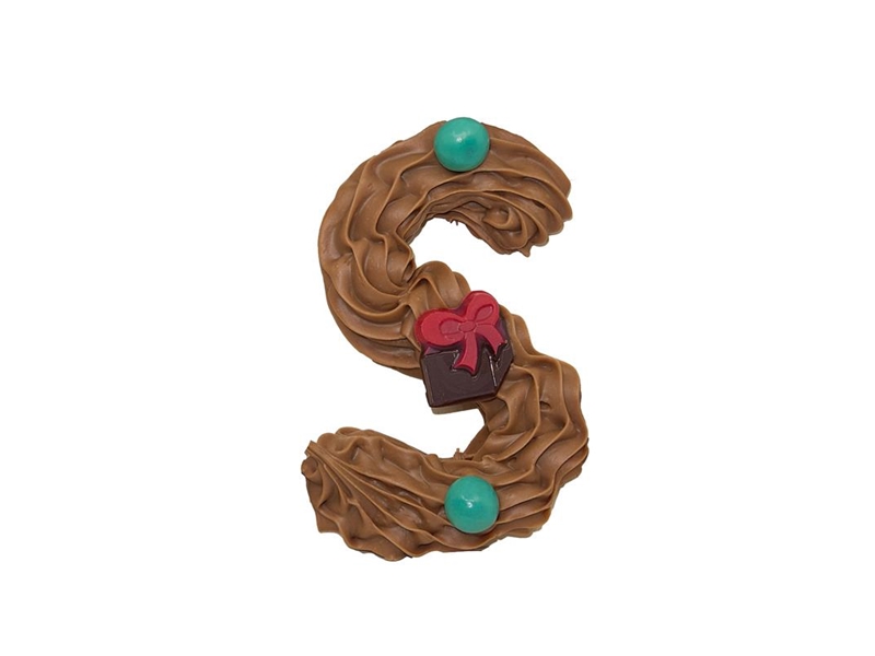 Handgespoten chocolade letter gemaakt van heerlijke romige chocolade die op smaak is gebracht met hazelnoot praline. Gedocoreerd met krokante balletjes en een sint decoratie.
